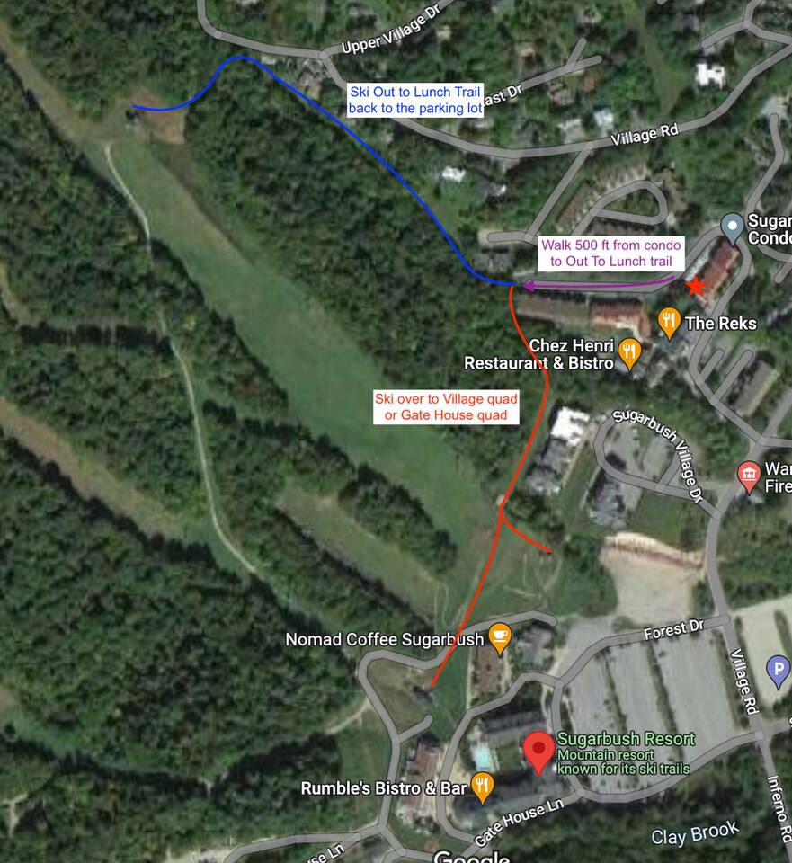 The condo is part of Sugarbush Village and the main resort is short walk away accessed through a covered bridge. Other areas that are easily accessible or a near by drive; - Mountainside Ski Service - Reks bar and grill - Sugarbush Golf Club - Blueberry Lake - Long Trail -Warren -Waitsfield -Waterbury